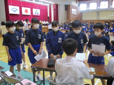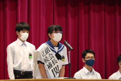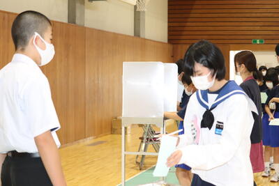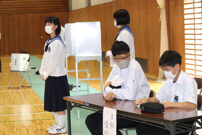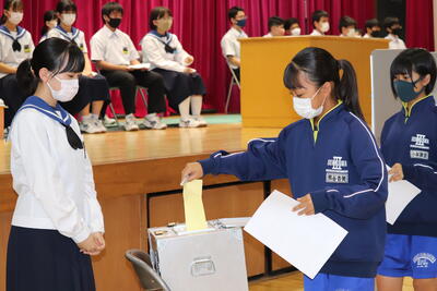 2021年9月16日 19時03分生徒会役員を決める立会演説会と投票が行われました。これからの三中を牽引していく代表を決める大切な選挙です。1年生にとっては、全てが初めての体験です。立候補者は、堂々と演説していました。また、その応援者の皆さんもすばらしかったです。特に後輩のために応援者を引き受けた3年生はさすがですね。皆さんの熱い思いは充分に伝わりました。選挙管理委員会の皆さんも準備や運営お疲れさまでした。