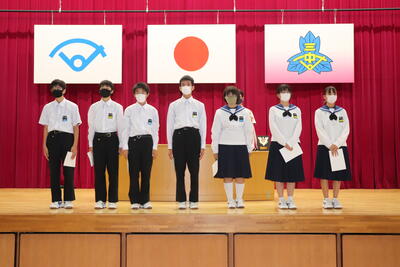2021年9月22日 07時41分生徒会役員選挙を経て、新たに7名の新役員が校長先生より任命を受けました。いよいよ3年生から2年生に引き継がれるんですね。これからの三中は君たちに任せた!!