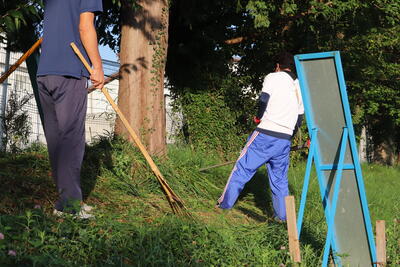 早朝からの奉仕作業、大変お世話になりました。草刈りや草集め、運搬など、暑い中ではありましたがご協力いただきありがとうございます。草ボウボウでしたが、とてもきれいになりました。
