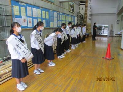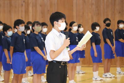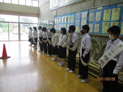 支部駅伝大会がいよいよ明日に迫りました。壮行会において、選手の皆さんのこれまでの頑張りを称えるとともに、全校生一丸となって応援しました。特設駅伝部の皆さんは、夏休みや朝の練習など本当に頑張ってきました。ぜひ本番でその実力を大いに発揮してほしいと思います。気になるのは、明日の天気ですね。