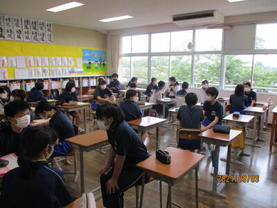 奉仕委員会で活動の反省を行いました。合わせて、3年生の卒業アルバムの撮影も行いました。もうそういう時期なんですね。後期からは、2年生を中心とした活動となります。ぜひ3年生の活動から多くのことを学んでほしいですね。