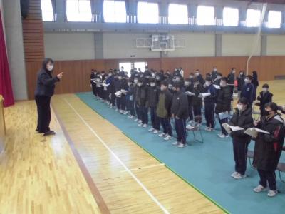 2021年3月1日 17時17分卒業式の予行を行いました。入退場や証書授与、合唱など仕上がり具合は良好です。少ない練習時間の中で、みんなよく頑張ってきました。卒業式の当日は参加できない1・2年生も3年生の姿を見て、来年度や再来年度に向けて、自分たちの卒業式のイメージを持つことができたのではないでしょうか。すばらしい予行でした。当日も楽しみです。
