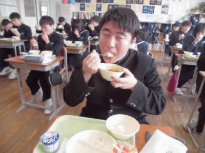 2021年2月28日 13時53分待ちに待った3年1組の希望献立です。どれもおいしくてほとんど完食です。さて、注目のメニューですが、挽肉のカレー、照り焼き、フレンチサラダ、ヨーグルト。挽肉のカレーは、肉の旨みが染みこんでいて、ご飯がとにかく進みます。照り焼きは、もちろん鶏肉です。見た目はハンバーグですね。食べ応え十分でした。サラダやヨーグルトは、カレーによく合いますね。3年生の給食も残すところあと数回です。じっくり味わっていきましょう。