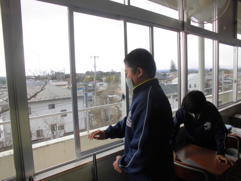 2021年1月20日 17時55分換気の様子です。授業中も風の通り道を確保しながら換気を行っています。また、休み時間には思いっきり窓を開けて空気の入れ換えを行っています。