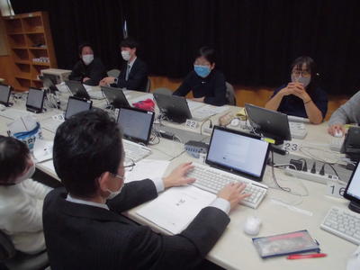 2020年12月23日 07時55分Giga Schooがいよいよ来年度から始まります。それに向けての我々教職員の研修会を実施しています。タブレットを使用しての授業の実践研修です。
