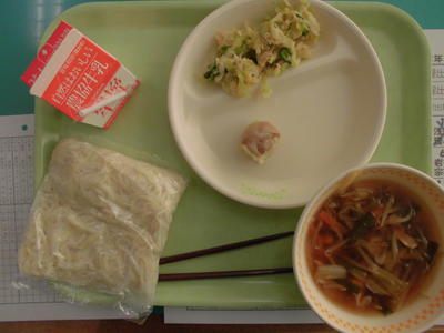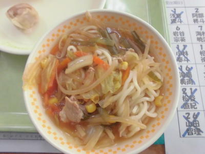 2020年12月2日 13時33分昨日の給食です。メインは、なんと言っても味噌ラーメン。大好きなソフト麺です。この味付けと食感が私は大好きです。生徒も喜んで食べていました。シュウマイやチキンサラダも付け合わせとしては最高ですね。個人的にソフト麺を週1回出してほしいなあ。ごちそうさまでした。