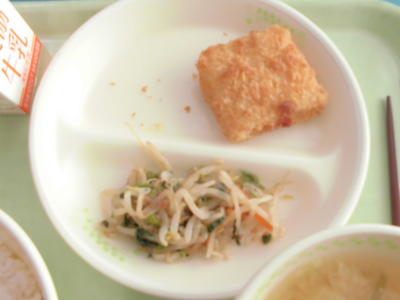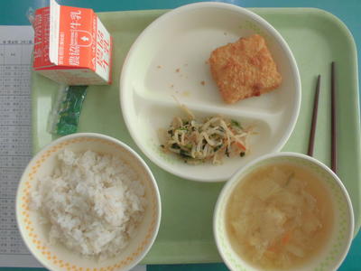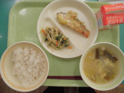 2020年12月2日 13時39分今日の給食は、存在感たっぷりの白身魚フライです。ソースをかけてカブリ!うまい!付け合わせの三食おひたしは、チョーさっぱりしていました。いいですね。白菜と油揚げの味噌汁は、白菜の歯ごたえが好きです。野菜たっぷりでした。ごちそうさまでした。