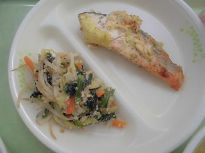 2020年12月7日 19時25分今日の献立は、「地産地消献立」です。鮭のマヨネーズ焼きは、マヨネーズの酸味と鮭が絶妙でした。なかなか食べたことのない味付けですが、やっぱりマヨネーズは最高ですね。ホウレン草のアーモンド和えは、細かいアーモンドが言いアクセントでした。これもなかなか食べたことがない味付けですね。これも良かったです。豆腐とわかめの味噌汁は、味噌汁の王道ですね。文句なしです。おいしい給食でした。