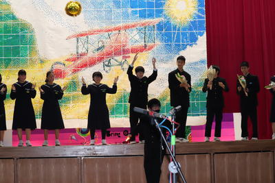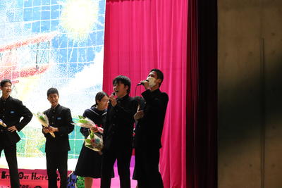 客席も盛り上がりました! | 実行副委員長の星くんの熱い歌声が響き渡りました! | 最後にくす玉を割って、「華王祭大成功!」実行委員長の亜子さん、お疲れ様でした。 |