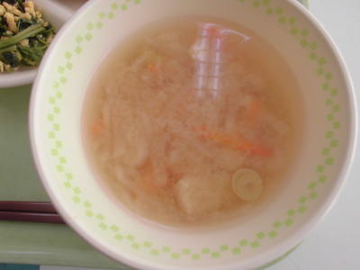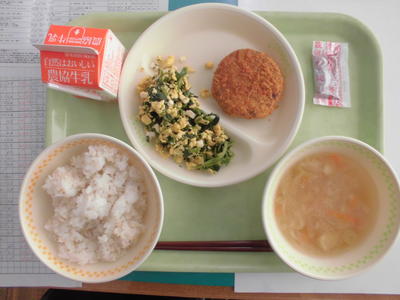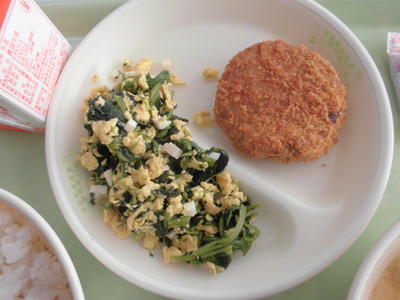 2020年11月17日 11時09分遅くなりましたが、昨日の給食です。ご覧の通りのおいしそうなメンチカツ。これはうまい。ふっくらサクサクそしてジューシー。最高でした。そしてちょっぴり気づいたことがあります。メンチカツにソースをつけて、しばらく置いておき、衣がしっとりしてきたところで食べると・・・・う、う、う、うまい!サクッとした衣もいいですが、このしっとり衣もいいですね。ほうれん草のたまごチーズ和えは、大好きメニューです。卵とチーズの相性が抜群です。とてもおいしくいただきました。ごちそうさまでした。