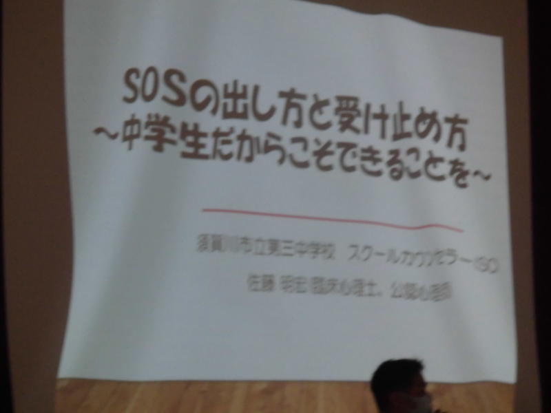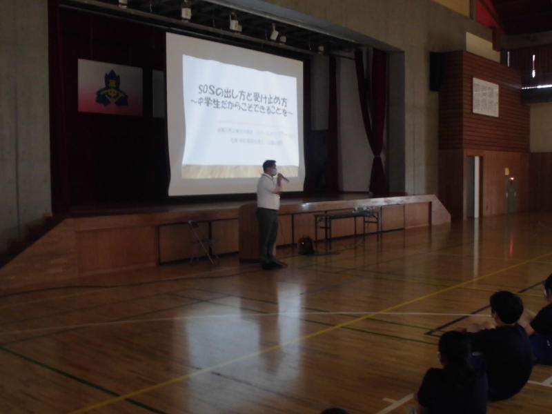 2020年9月7日 14時33分本日は6校時に「SOSの出し方に関する教育」が行われました。全校生徒を対象として、スクールカウンセラーの佐藤先生から、ストレスへの対処法、適切な援助希求行動(信頼できる大人にSOSを出すこと)や自分だけでなく困っている友人等がいた場合の対応(SOSの受け止め方)について、お話をいただきました。今回のお話を今後の学校生活にいかしていけるといいですね。