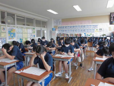 2020年8月21日 14時18分とにかく暑いの一言です。暑くてもさすが受験生。3年生は、元気?に実力テストに励んでいました。お疲れっす!