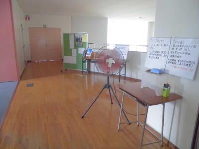とにかく暑すぎて、教室は窓を少し開けてのエアコンフル回転+扇風機のダブルで何とかしのいでいましたが、それにしても暑いです。今日は廊下も扇風機を回すほどの暑さです。本日の部活動も中止となりました。