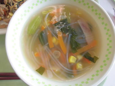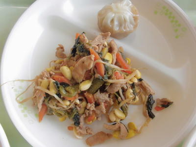 2020年8月24日 14時43分本日の給食は、ビビンバ、小籠包、五目スープの三点盛りです。韓国料理の王道ビビンバ、豚肉と野菜、そして大豆もやしがコラボして、おいしかったです。大豆もやし・・・ナムルとかでは食べますが、普段はあまり食べない食材ですね。個人的に食感が好きです。小籠包は、中華料理の王道ですね。これもおいしかった。かんだときの肉汁がいいですね。もっと食べたかったです。五目スープは、中華料理でもよく出てきますね。マロニーがたっぷり入っていて、のど越しが最高です。夏バテ予防にベストな給食だったと思います。ごちそうさまでした。