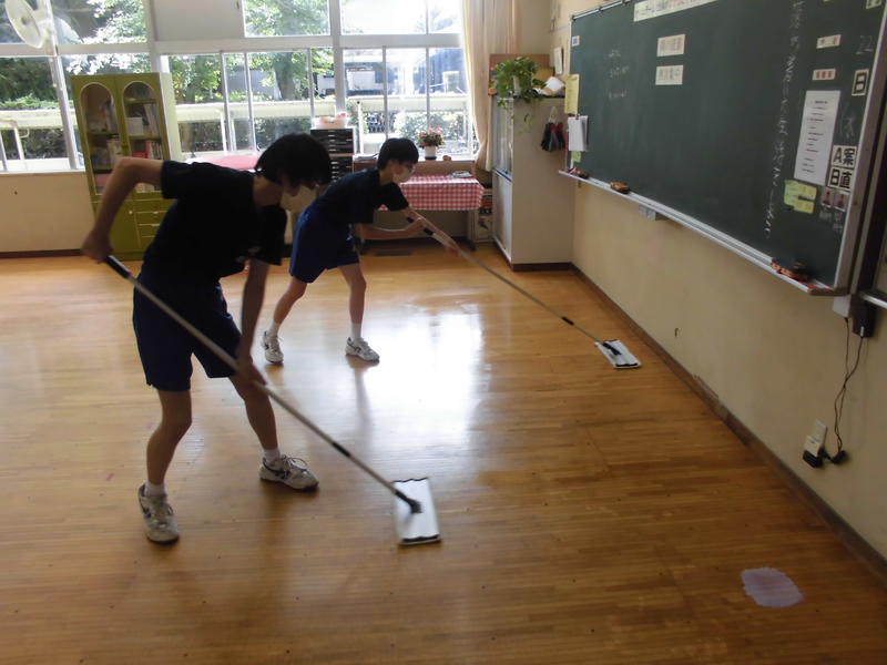 2020年7月22日 11時31分昨日は全校一斉にワックス清掃が行われました。写真のように教室や特別教室の床がピカピカになりました。また、本日はぼたん学級でもワックス清掃が行われました。協力しながらていねいにワックスがけを行っていました。あと少しで夏休みです。きれいになった教室で、1学期のまとめを頑張りましょう!