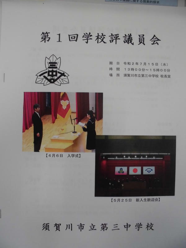 本日、令和2年度第1回学校評議員会が行われました。校長室にて委嘱状の伝達を行った後、本校の学校経営方針及び小中一貫教育の説明を校長室で聞いていただきました。
