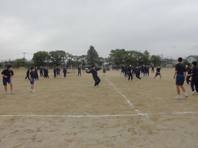 2020年6月1日 18時55分やっと3年生のクラス集合写真を撮ることができました。校舎をバックに、校庭の中央からの撮影です。その後は、校庭でドッジボール大会。クラス対抗で盛り上がりました。ちなみに結果は、1位が2組、2位が3組、3位が1組でした。