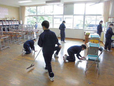 久しぶりの清掃の様子です。騒がしくなるのかと思いきや、みんな静かにきちんと清掃していました。整列も素晴らしかったです。
