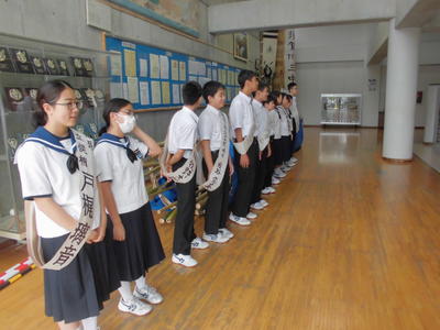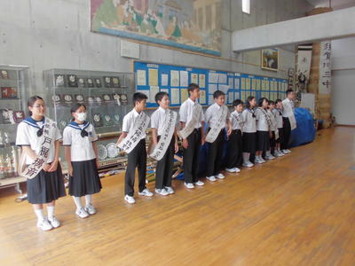 生徒会役員選挙を前に、いよいよ選挙運動が始まりました。今回は1年生の役職で選挙戦になる予定です。朝の登校時などみなさん、熱心に街頭演説を行っています。