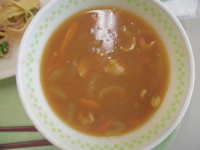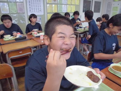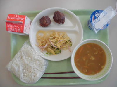 今日の給食は、待ちに待ったソフトメン!!!!楽しみにしていました。しかもカレーうどんです。献立が配られたときから楽しみにしていました。食べてみると、熱々でとにかくうまい!出汁のきいたカレースープに、ソフトな麺がたまりません。もっと食べた~い!味噌だれ肉団子は、軟らかくて濃厚な味噌だれが食欲をそそります。食べ応え十分でした。春雨サラダはさっぱりしていますが、味付けもしっかりしていて、とてもおいしかったです。彩りもいいですね。最後にヨーグルトですが、大好きなソフールです。おいしすぎて何も言うことはありません。本日の給食は最高でした!ちなみに献立は「カレーうどん、牛乳、味噌だれ肉団子、春雨サラダ、ヨーグルト」です。来月もソフトメンあるのかな?期待しています。ごちそうさまでした。