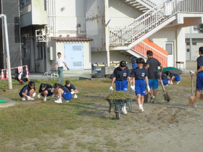 第2回PTA奉仕作業大変お世話になりました。早朝からのご協力、ありがとうございました。さらに、昨日の夕方から草刈りを行っていただいた保護者様にも改めて感謝いたします。おかげさまで、校庭がとてもきれいになりました。でも、思った以上に草が生えていて驚きました。生徒のみなさんもお疲れ様でした。