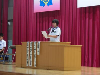 2019年8月27日 13時42分 第2学期の始業式が行われ、全校集会と抱き合わせとなり、内容は盛りだくさんでしたが、無事終了しました。校長先生のお話では、身につけてほしい4つの力について話されました。