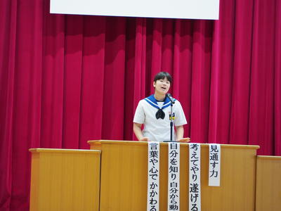 また、代表生徒の作文発表や英語弁論大会の発表、特設合唱部の発表、支部駅伝大会壮行会などとにかく盛りだくさんでした。