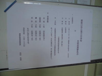 2019年8月27日 16時00分いよいよ後期生徒会役員選挙が始まります。2年生より4名、1年生より3名、計7名の生徒会役員を選出します。選挙管理委員の皆さんも準備で大忙しです。定数を超えるのか超えないのか、投票か無投票か、こうご期待!