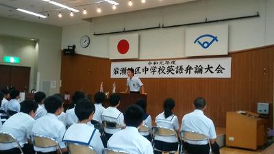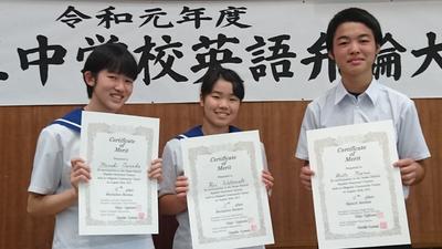 2019年8月28日 18時40分岩瀬地区英語弁論大会が開催されました。本校から出場した3年生3名が大健闘しました。練習の成果を十分発揮し、すばらしい発表をしてくれました。本当におめでとうございます。そして、生徒の皆さん、英語科の先生方、お疲れ様でした。