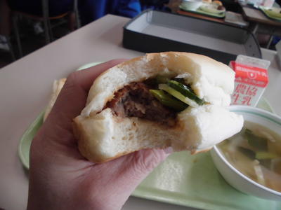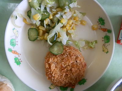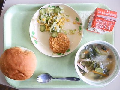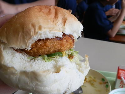 2019年7月11日 19時03分今日のメニューは、「丸コッペパン、牛乳、メンチカツ、ソース、キャベツのサラダ、コンソメスープ」です。メンチカツをパンに挟めば、メンチカツバーガーです。野菜との相性も抜群ですね。食べ応え十分最高でした。スープも野菜の旨みがたっぷりでおいしかったです。野菜たっぷりの給食はありがたいですね。ごちそうさまでした。