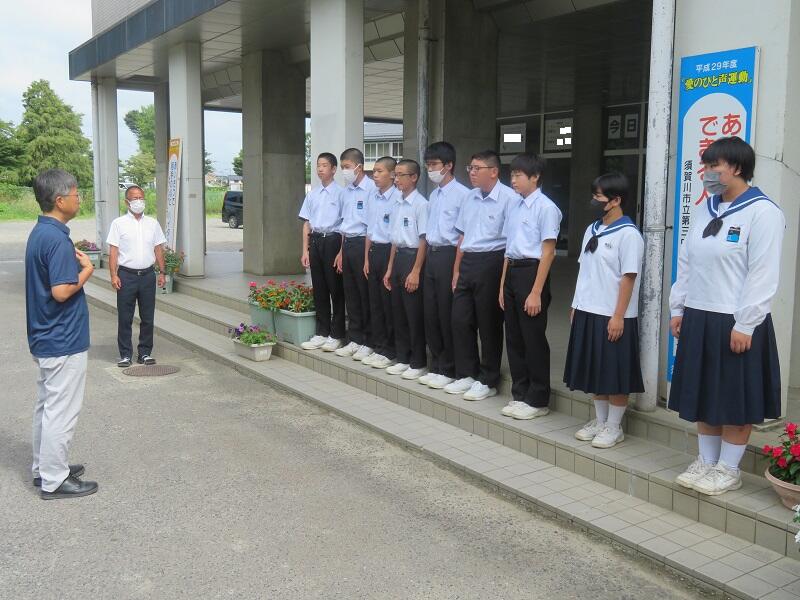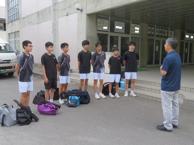 2023年7月22日 09時02分先ほど、福島県中学校体育大会に出場する選手たちが学校を出発しました。今日は、公式練習と開会式を行う競技がほとんどですが、バドミントンのみ個人戦が行なわれます。