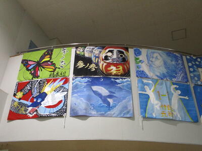 学級旗が完成しました。どの学級旗もユニークなアイデアで学級らしさのあるものに仕上がりました。制作委員のみなさん、想いあふれる学級旗づくり、ありがとうございました。学級旗は昇降口に掲示しています。来校、登校した際には、ぜひご覧下さい。
