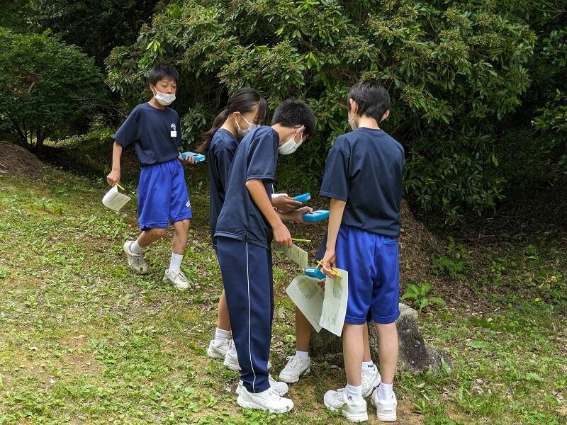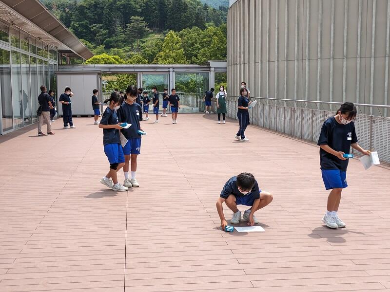 2023年6月8日 10時59分放射線についての学習を行っています。実際に外に出て、放射線を測定しています。