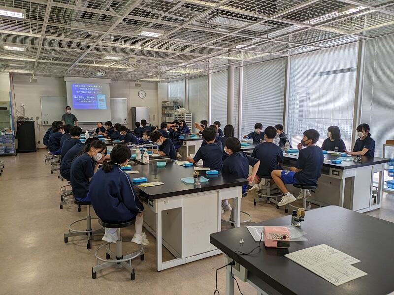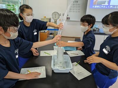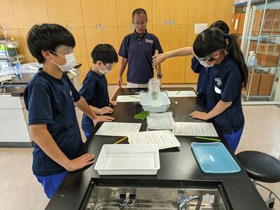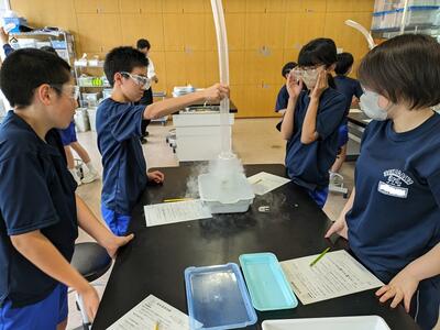 2023年6月8日 14時01分お昼を食べ、午後から液体窒素の実験を行っています。様々な物体が凍り付く様子を真剣に観察しています。