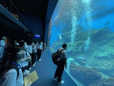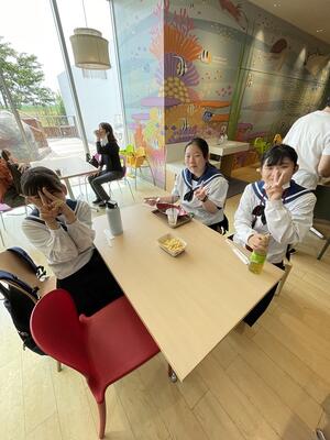 2023年6月8日 12時24分仙台市の「うみの杜水族館」に行ったグループです。たくさんの魚が泳ぐ水槽やショーを見たり、お昼ご飯を食べたりしているようです。
