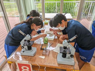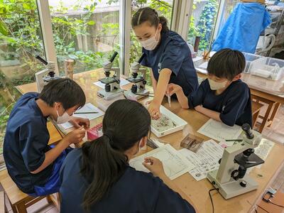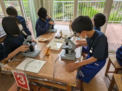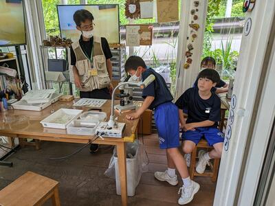 2023年6月8日 12時33分水生微生物の観察を行っています。身近な水の中に棲む生物を、顕微鏡などを使って観察します。どんな生物が発見できるでしょうか?