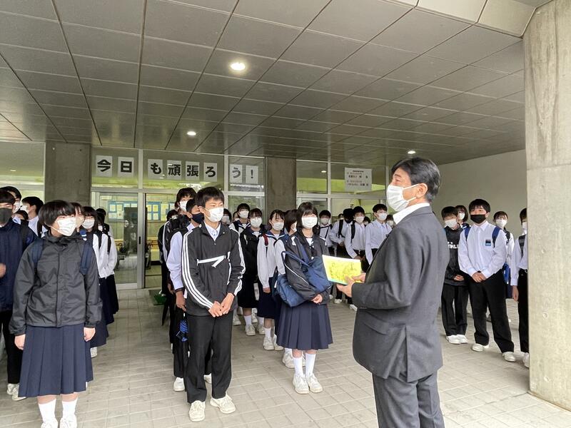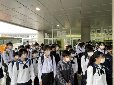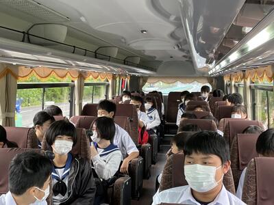 2022年6月9日 08時14分天気は微妙ですが、出発式を終え、無事松島に向けて出発しました。時々子どもたちの楽しんでいる様子をアップしますので、お楽しみに!