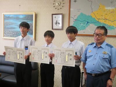2つのコンクールの表彰式が、本日須賀川警察署で行われ、署長さんから一人一人に賞状が手渡されました。