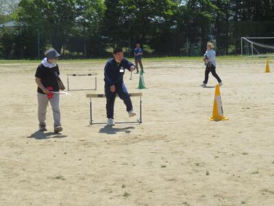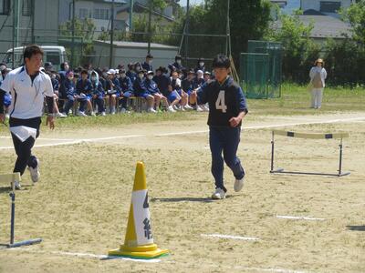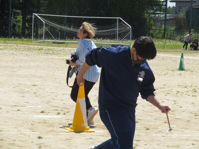 2023年5月11日 13時07分本日は晴天の中、校内体育祭を行っています。9時からの開会式の後、まずピンポン玉競争から午前の競技がスタートしました。