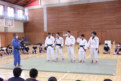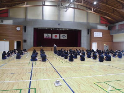 2020年7月14日 08時46分3年生の部活動引退セレモニーが開催されました。柔道部による実演(田代先生を得意技で決めろ!)、バスケ部によるスリーポイント実演。そしてクラス対抗スリーポイント競争やバレー部女子対各クラス男子+先生、卓球とバドミントンによる熱いバトルなど、内容は盛りだくさんでした。総合優勝は2組でした。みんな楽しくプレーしていました。良い思い出ができたと思います。
