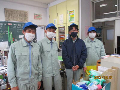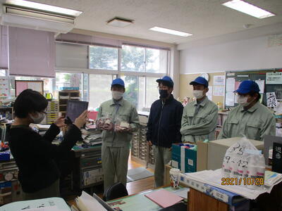 2021年10月28日 11時41分岩瀬農業高校のみなさんが販売実習で三中にやってきました。昨年度の卒業生の小沢くんとその仲間達です。岩瀬農業高校で栽培したまさに旬のサツマイモです。品種は紅あずまとパープルスイート。しかも一袋200円です。安い!!完売です。どうやって食べようか楽しみです。その後、ちょっとだけ高校生活についてのインタビューをしました。とても楽しく学習に励んでいるようです。岩瀬農業高校のみなさん、これからも頑張ってください!また、おいしい農作物、待ってま~す!