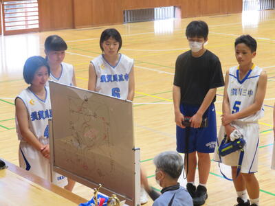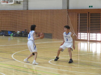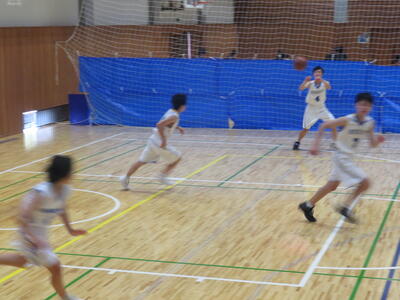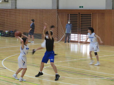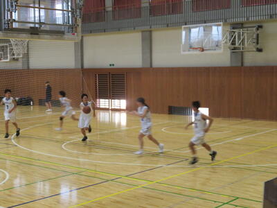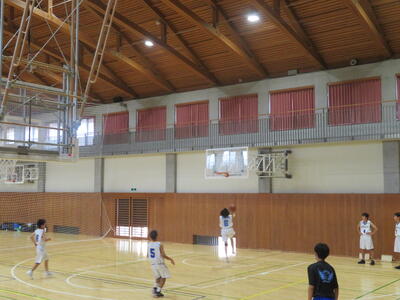 2022年5月28日 17時44分 バスケ部は、大東中との合同チームで支部大会に出場します。男子と一緒に練習しています。途中、コーチの指示を聞きながら、各自が入念に動きなどを確認していました。とにかくよく走ります。