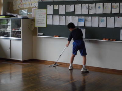 教室ワックス清掃中!