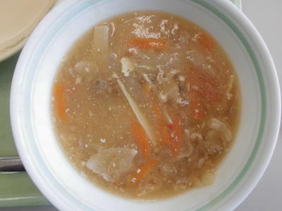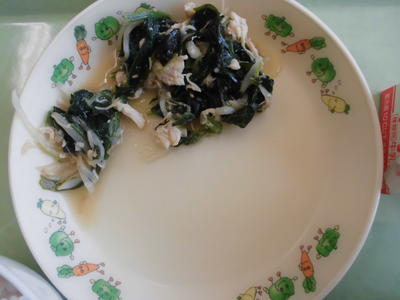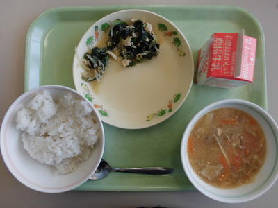 メニューは、「麦ご飯、家常豆腐、牛乳、鶏ささみとほうれんそう草の和え物」です。ほうれん草の和え物は、とてもさっぱりしていて、ささみとの相性もいいですね。おいしかったです。ごちそうさまでした。