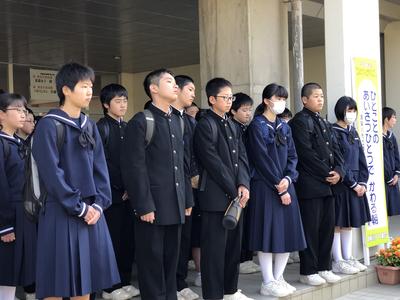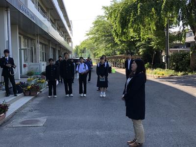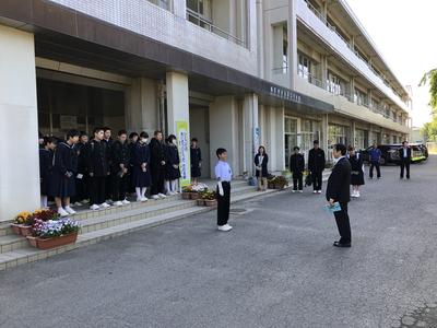 2019年5月22日 14時30分いよいよ2年生の学習旅行が明日に迫ってきました。今日は、結団式と集団行動訓練を行いました。とりあえず、整列や写真隊形など大丈夫そうです。明日はかなり暑くなりそうなので、熱中症対策も含めて、健康管理を十分心がけてほしいと思います。2年生の皆さん、今晩は勉強を少しやって(ゲームやスマホは控えめに)、早めに寝ましょう。