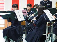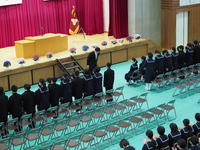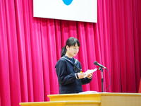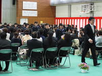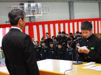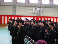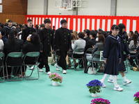 1年生は、担任の呼名に大きな声で返事をし、進級した在校生は大きな声で校歌を斉唱して新入生の入学を祝いました。