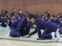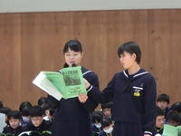 生徒会役員から、生徒会活動、学校行事や正しい制服の着方等の説明のあと、部活動紹介へと進み、最後は応援委員会による新入生へのエールで会を閉じました。