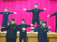 入学して3日目の新入生も、部活動紹介の2,3年生のパフォーマンスを見て、若干表情が和らいだように感じられました。