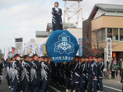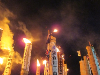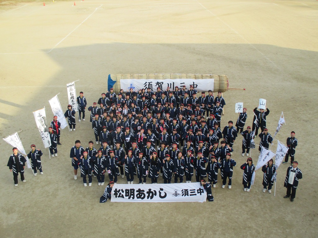 2017年11月13日 14時29分11月11日(土)に須賀川市伝統の松明あかしが行われ、今年も三中は松明行列から参加しました。一トンにもなる松明を全校生で力を合わせて運びきりました。須賀川三中が一体となって成し遂げることができました。夜の応援も風の強い中でしたが、三中生が応援団を中心に大きな声で応援歌を歌い、大いに盛り上がりました。
