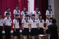 各学年代表の原稿を見ることのない立派な発表、合唱部の夏休み中の練習の成果の披露もありました。
